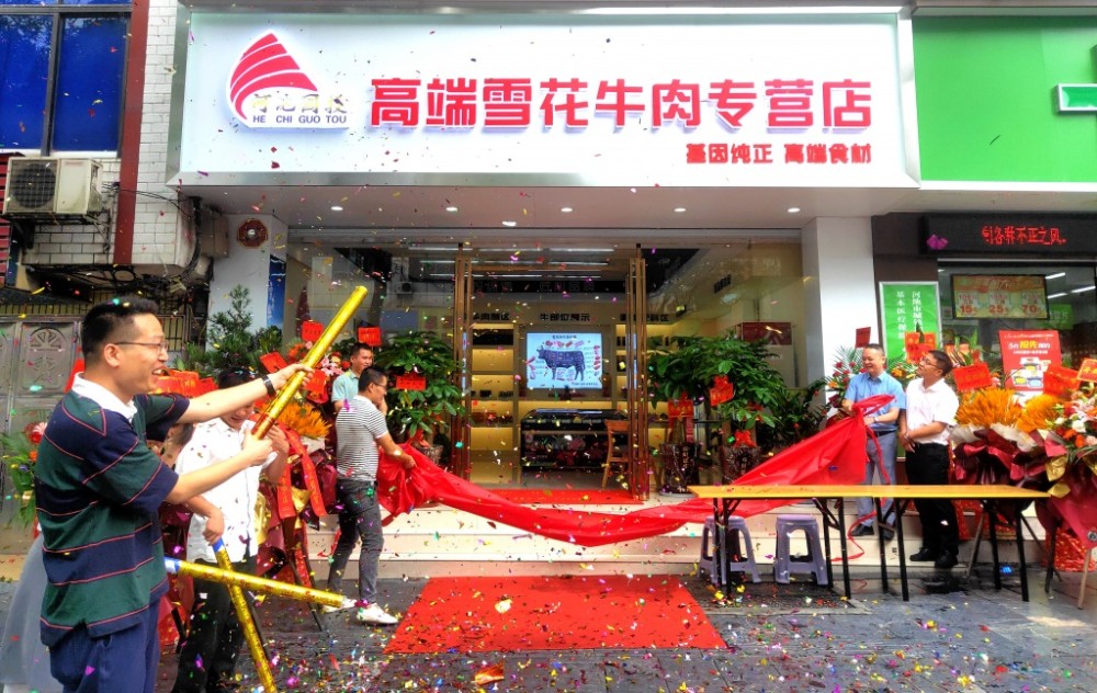 6月6日上午,集團高端雪花牛肉專營店金城江店在金城江城區(qū)水洞轉(zhuǎn)盤正式開業(yè)。該店選取上腦、眼肉、西冷、里脊等經(jīng)典牛肉部位及性價比超高的尾龍扒、針扒、肋條、牛胸肥牛等優(yōu)質(zhì)肉品進(jìn)行售賣,價格在每公斤80元至600元不等。